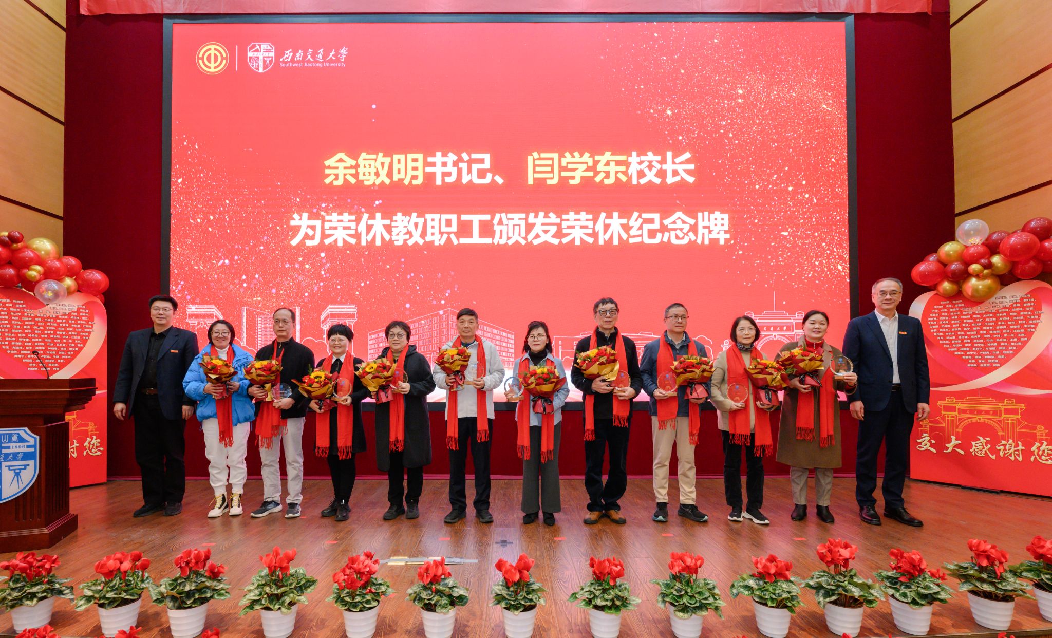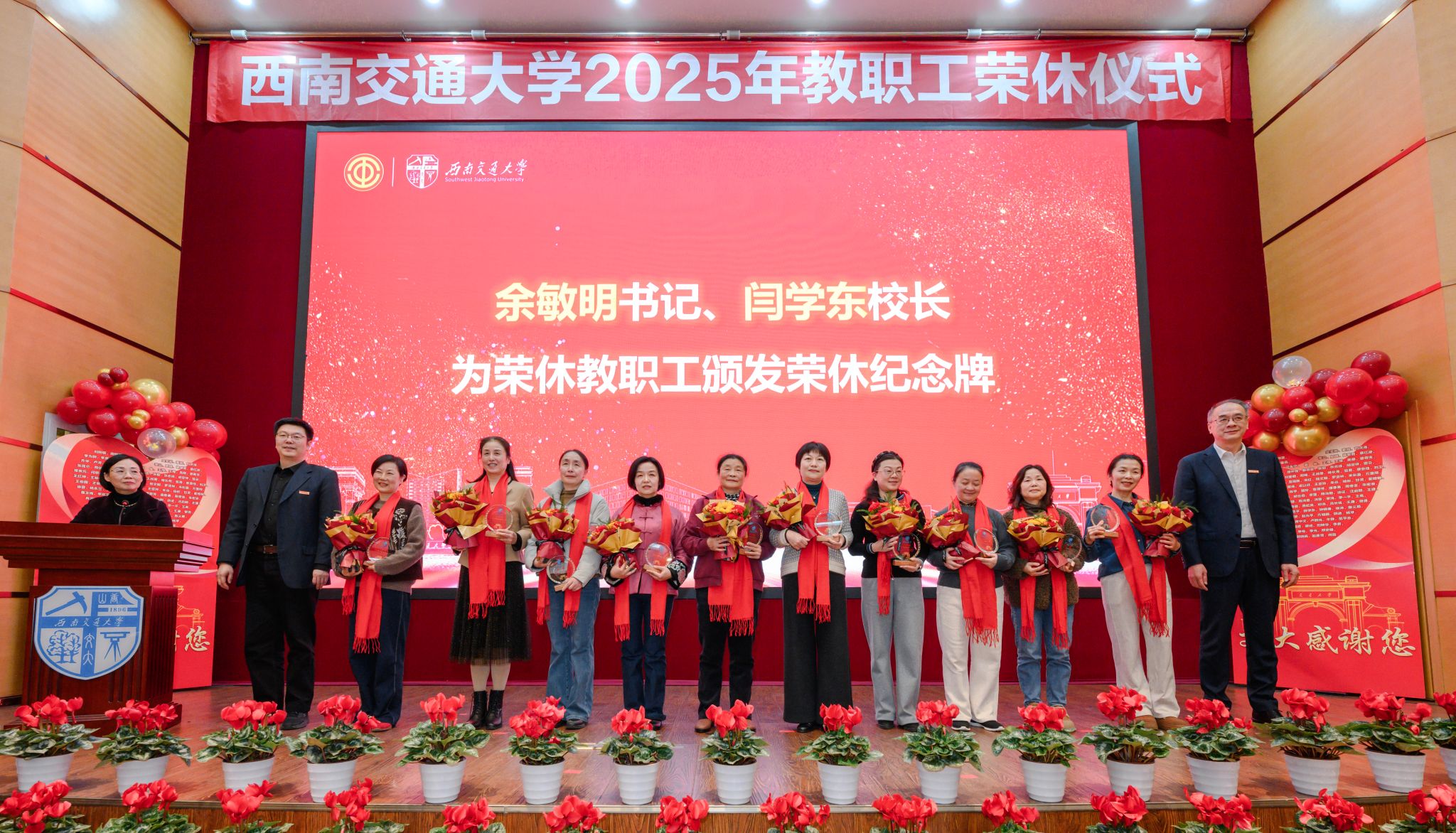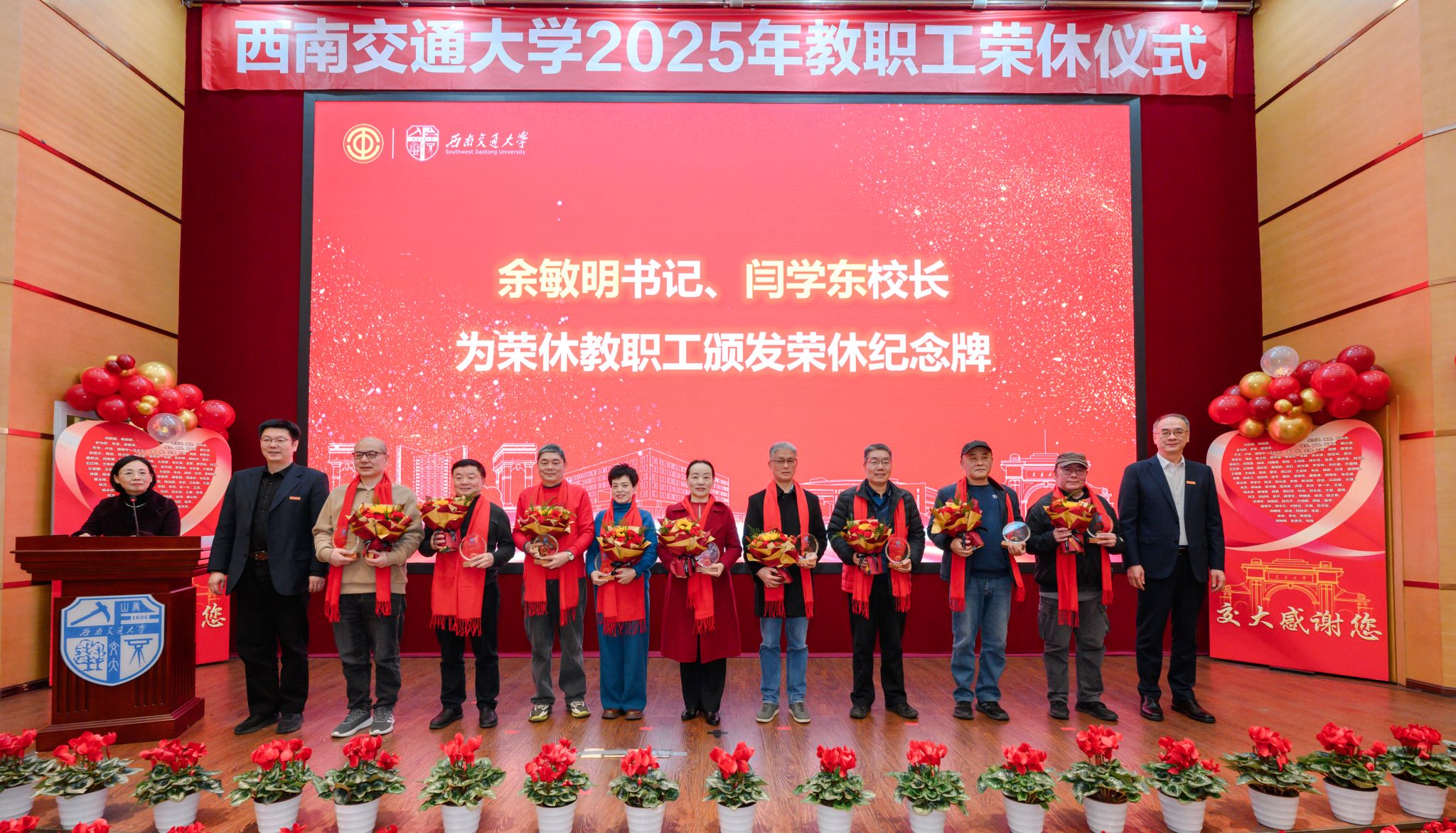 12月25日下午,英国上市公司3652025年教职工荣休仪式在犀浦校区11号教学楼418会议室举行。校党委书记余敏明,校长闫学东,党委常委、副校长晏启祥出席仪式。党委副书记杨爱华主持仪式。