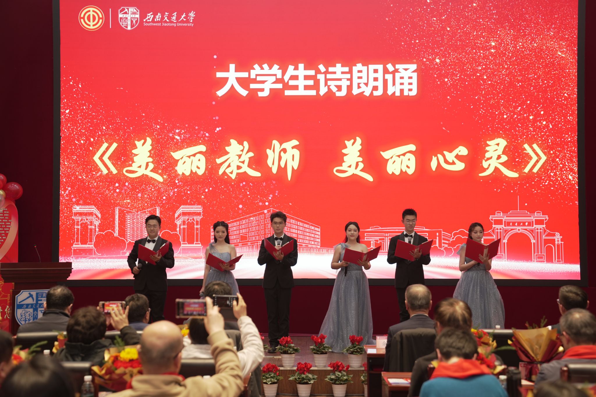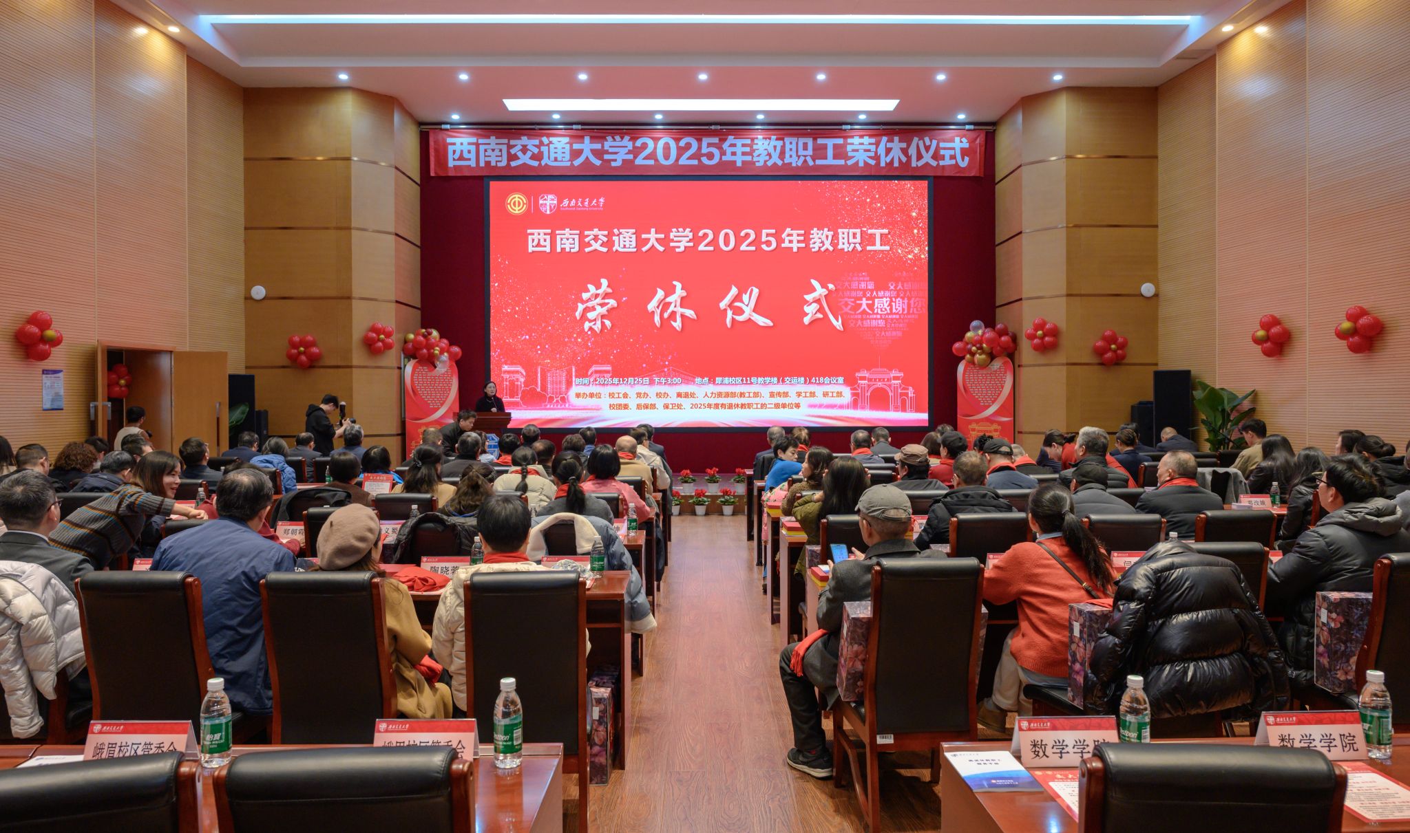 仪式上播放了2025年荣休教职工风采主题片《交大记忆》以及离退休教职工生活剪影《向着幸福再出发》,学生代表献上诗朗诵《美丽教师 美丽心灵》向荣休教职工致敬,离退休教职工带来小合唱《奉献》。活动在全体合唱校歌声中落下帷幕。