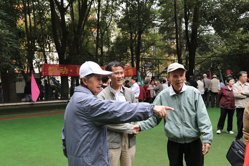 10月9日上午九点,晚晴苑彩旗飘扬,热闹非凡,和暖的阳光映照在每个离退休老同志的脸上,喜悦之情溢于言表。离退处组织的趣味比赛活动如火如荼地开展起来了。学校党委王顺洪书记、沈火明常委一行亲临晚晴苑,王书记、沈常委与老党员、老教授、老同志一一握手,代表学校向老同志致以亲切的问候和节日的祝福,并亲切地询问了老同志们的身体健康情况,了解大家的生活状况,叮嘱大家要注意身体:“老同志是学校的宝贵财富,大家为学校发展做出了贡献,一定要保重身体!”。此外,王书记还对老同志介绍了学校近年来的发展成就及今后的工作思路,并希望老同志们继续关心与支持学校的发展,为学校更好更快的发展建言献策。王书记看着老同志们对本次重阳节活动所表现出的极大热情,非常高兴。他特别嘱咐郭书和处长、刘建平书记等离退处领导,多组织一些这样的活动,学校一定会在经费上大力支持老年活动。