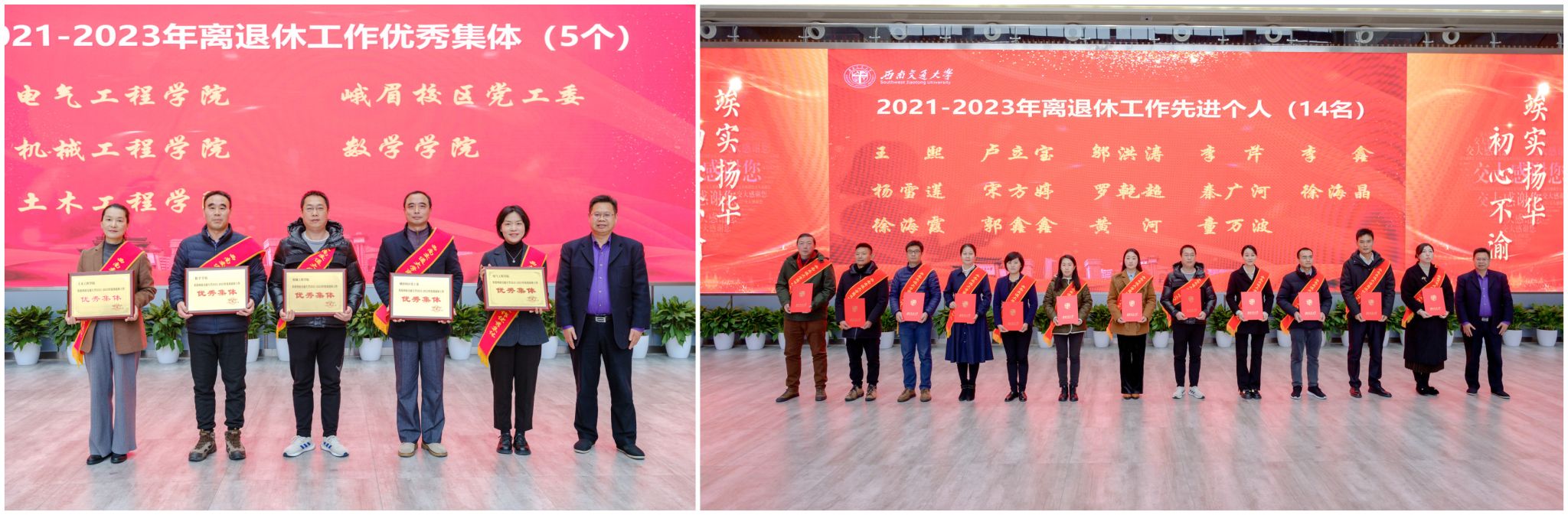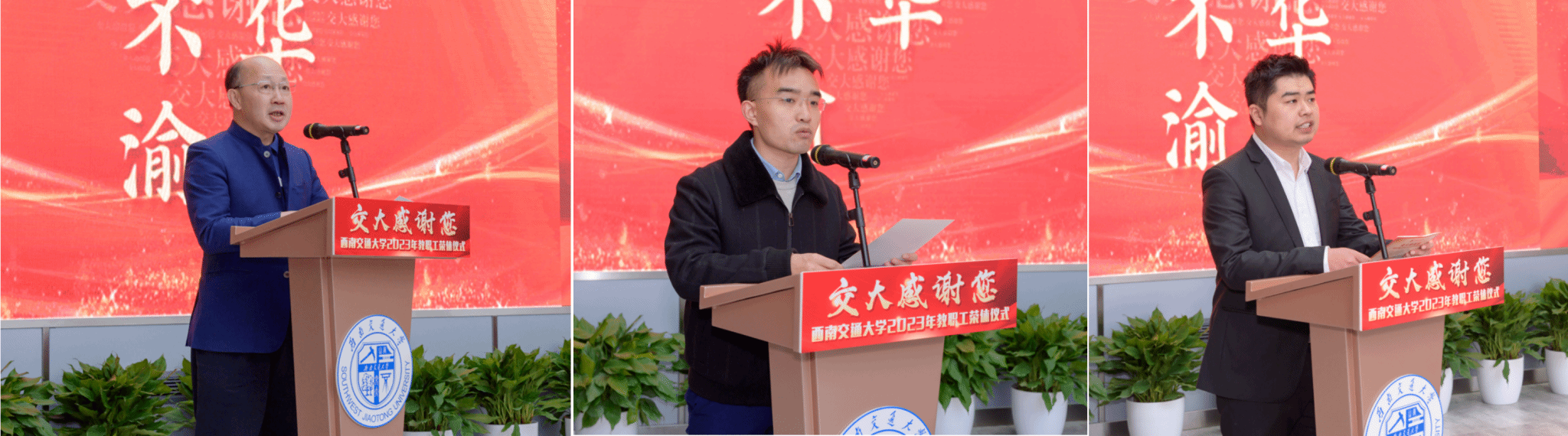 12月28日,学校2023年教职工荣休仪式在犀浦校区三号教学楼阶梯广场举行,学校党委书记余敏明,校长、党委副书记闫学东出席仪式。部分荣休教职工,各有关单位负责同志、离退休工作联络员、青年教师和学生代表参加仪式。仪式由党委副书记杨爱华主持。