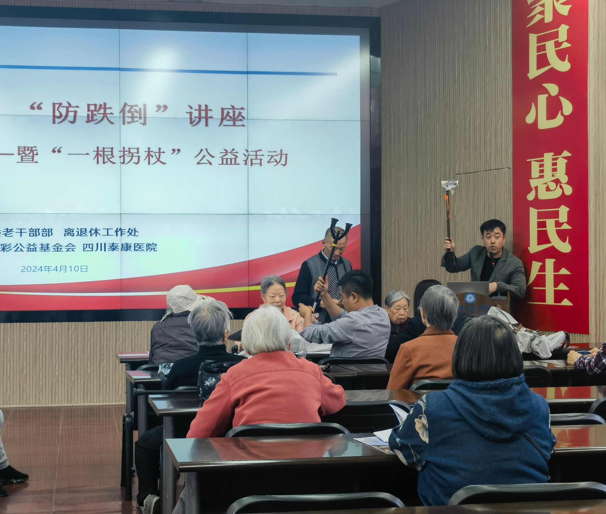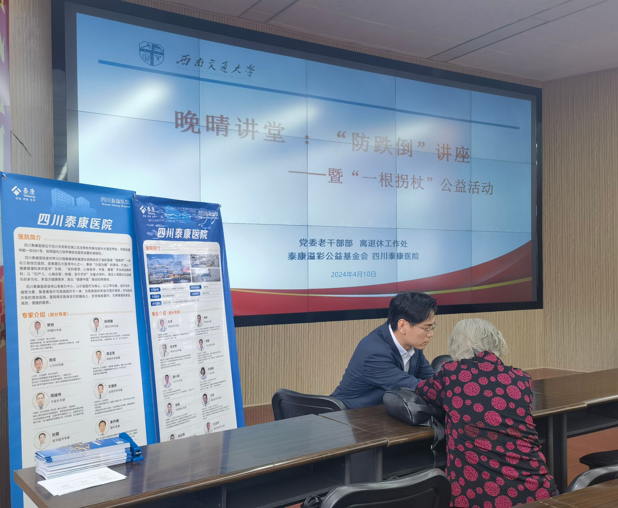 2024年4月10日下午,离退处工作处联合泰康.蜀园举办的“防跌倒”公益活动(第二场)在九里校区晚晴驿站顺利举行。