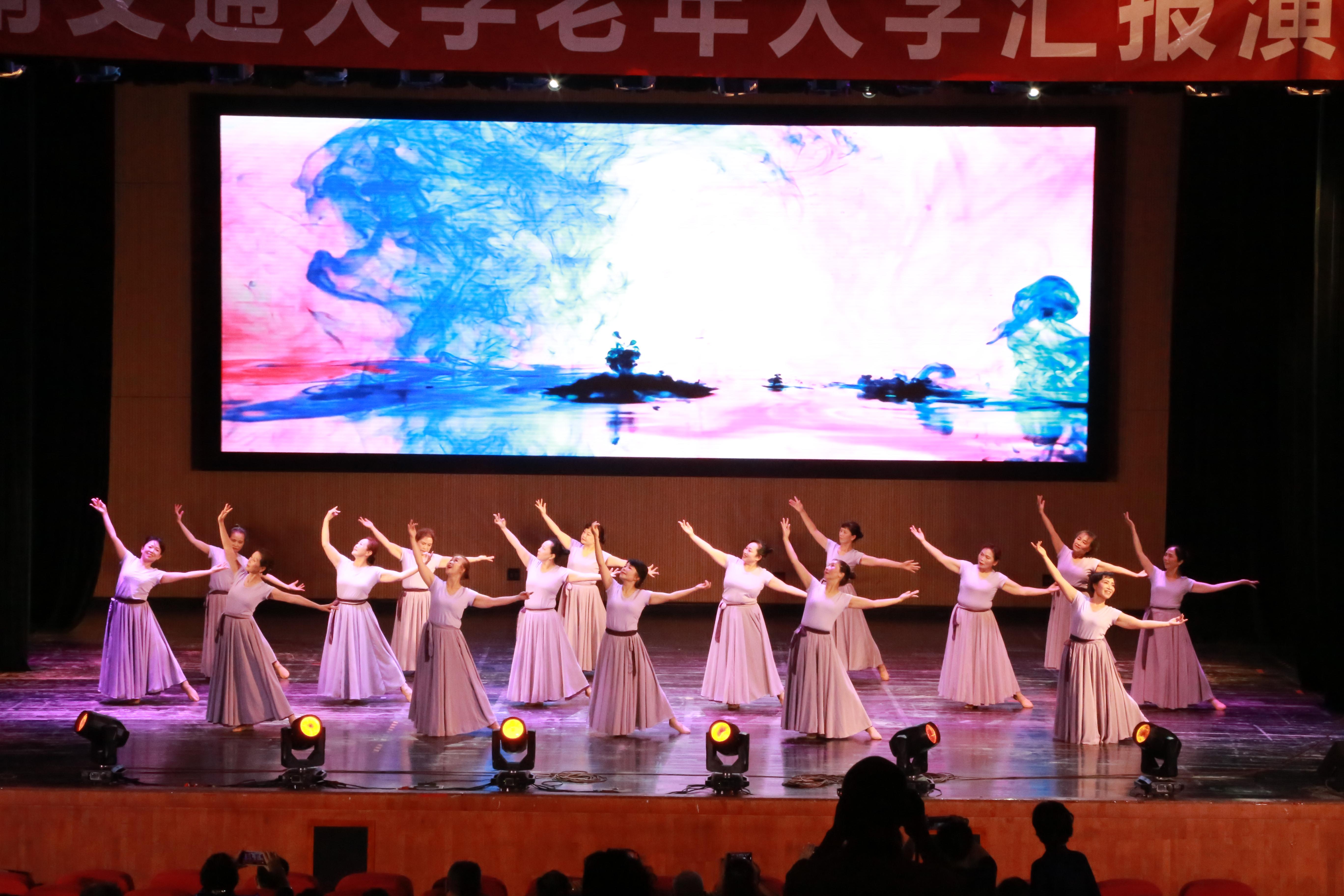 6月21日,我校老年大学2023年文艺汇报演出在九里校区大学生会堂举行。190余名学员用歌声、舞蹈、健康、热情诠释了“阳光生活乐享晚晴”的意义。文艺汇报演出共三幕十八个节目,有合唱、舞蹈、京剧、走秀、流瑜伽、太极扇等多种表演形式,其中,流瑜伽作为众多女学员喜爱的健身项目,经过艺术加工后在舞台上展示。